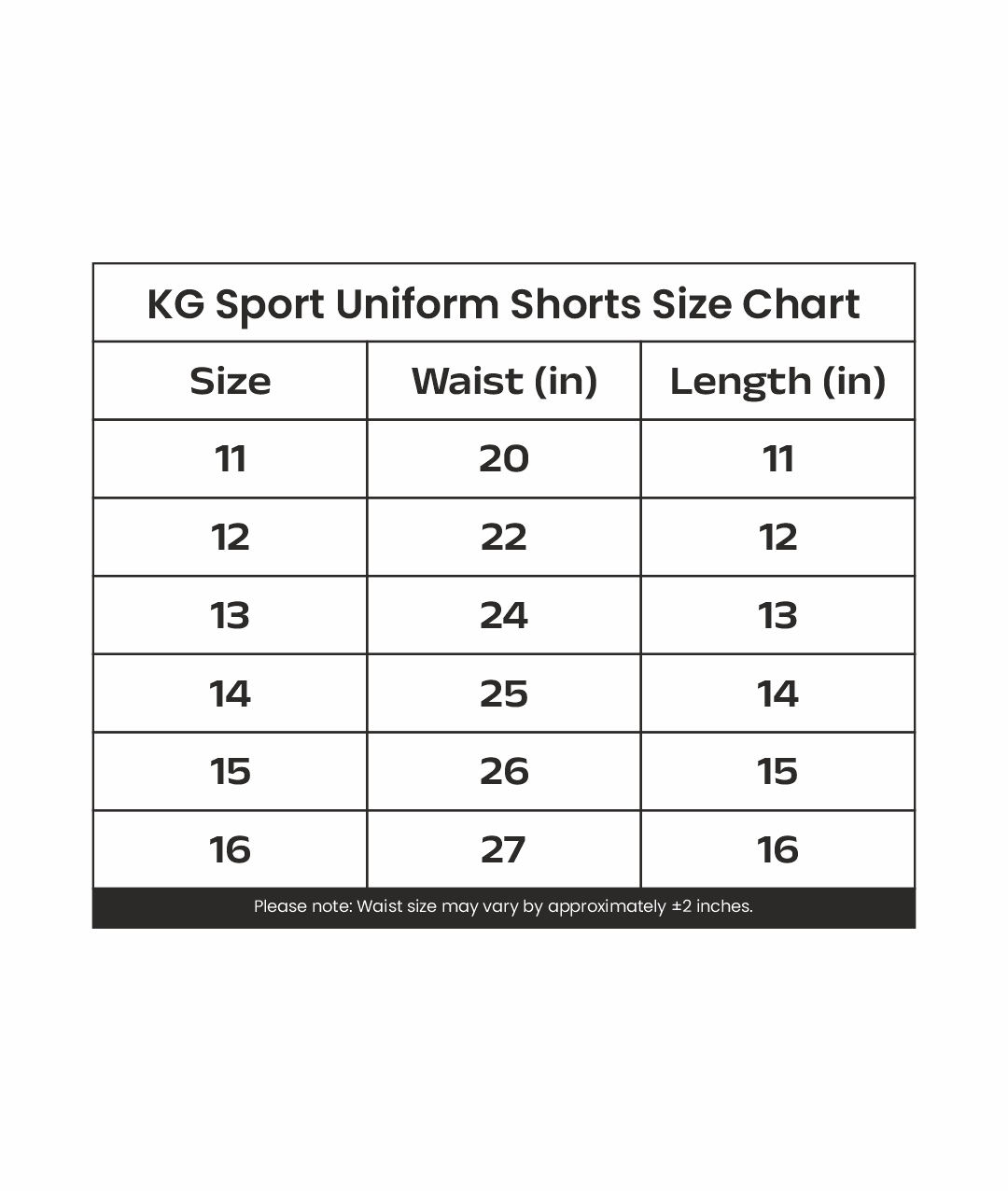 | Sport Shorts Size | 11, 12, 13, 14, 15, 16 |