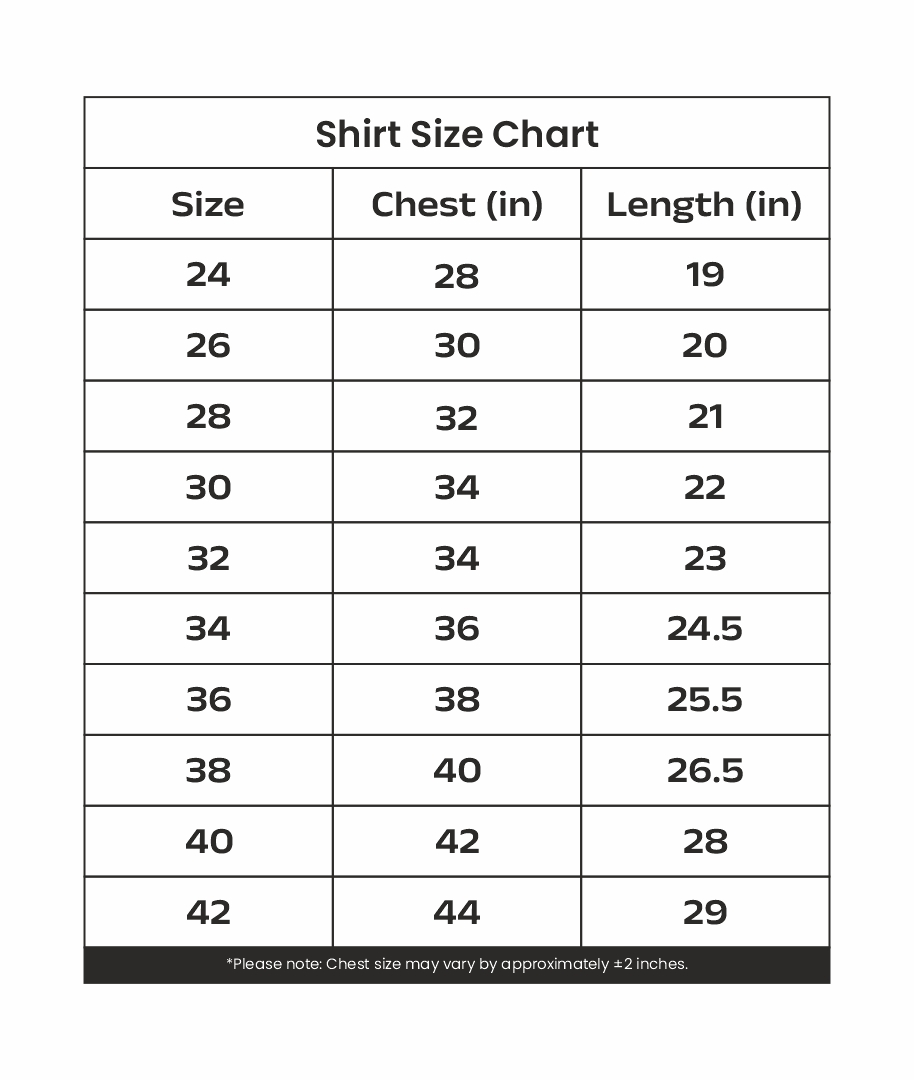Shirt Size24, 26, 28, 30, 32, 34, 36, 38, 40, 42